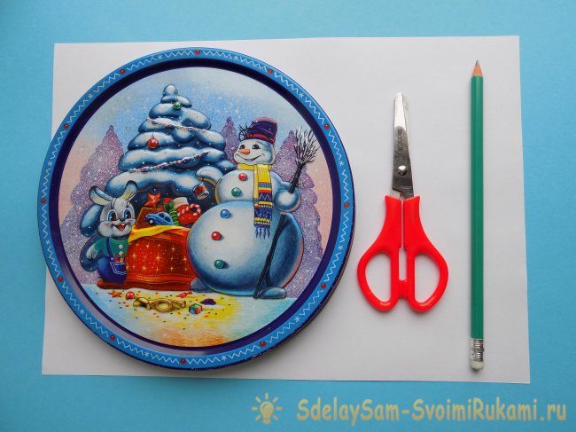 По шаблону рисуем на бумаге круг, который и будет заготовкой для будущей елочки.