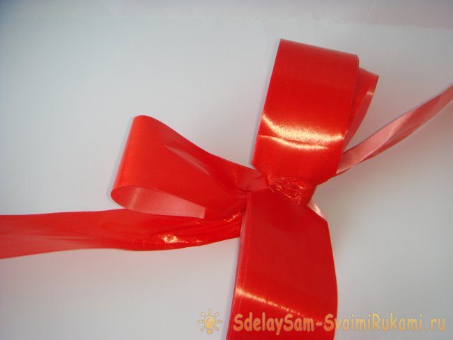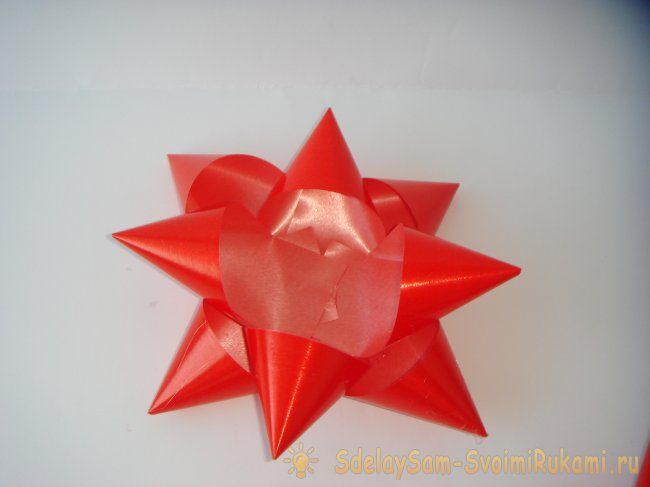 А в самом центре поместите цилиндрическую заготовку. Бант в виде пышного цветка готов!