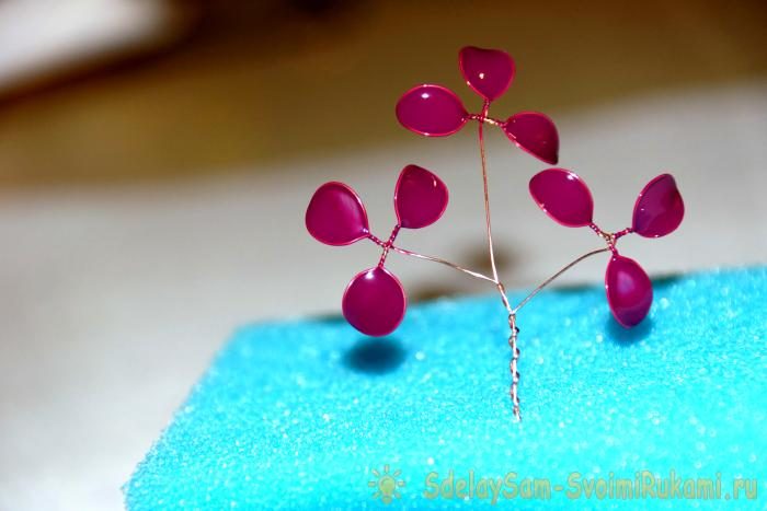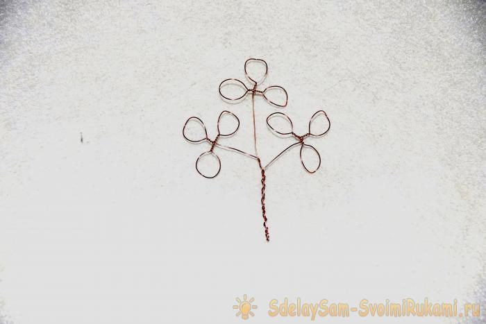 5. Тоже самое проделываем с остальными кружками. Получается трилистник. Диаметр кисти – 8 мм. Нужно оставить ножку длиной 5 см. На один трилистник уходит примерно 14,1 см проволоки.