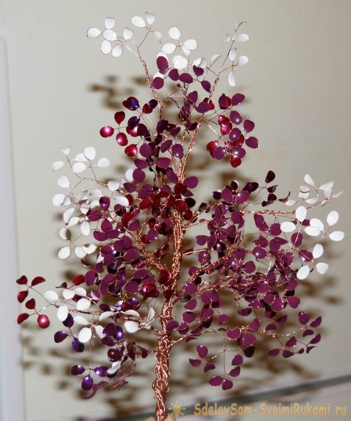 Дерево прекрасно украсит интерьер, или подойдёт в качестве необычного и эксклюзивного подарка. Их изготавливают из различных материалов: бумаги, бисера, картона и пр.