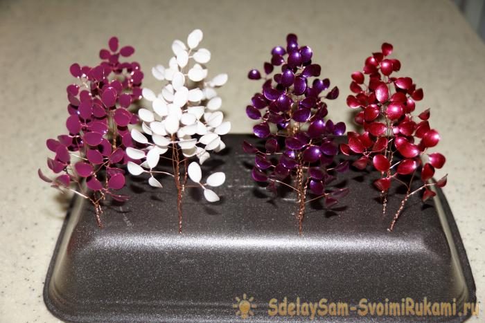 В основе этого мастер-класса заложено 2 материала: проволока и лак для ногтей, чтобы получилось дерево своими руками.