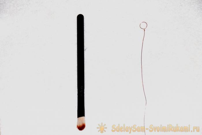 1. На обратный конец кисточки накручивается проволока. У основания кисточки, проволока сжимается пальцами, её необходимо прокрутить 3-4 раза (в зависимости от диаметра кисточки).