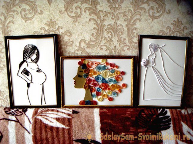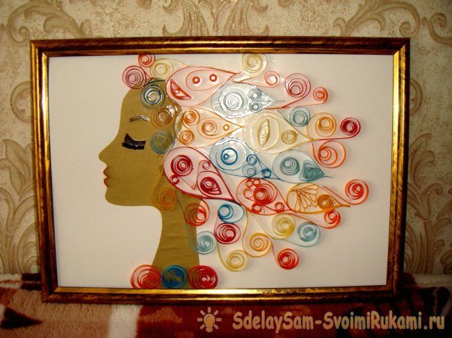 А если объединить несколько техник (квиллинг, контурный квиллинг и аппликацию), то получится очень красивое панно.