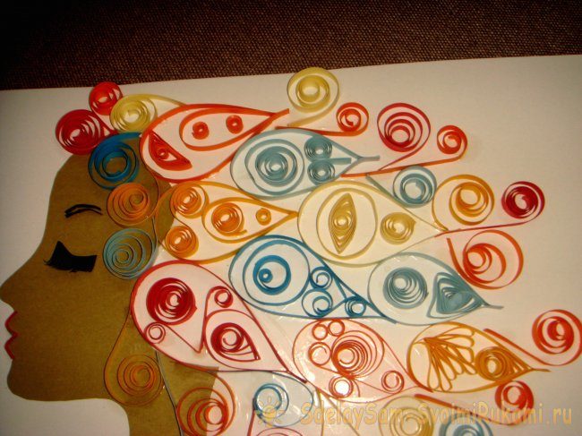 Теперь переходите к изготовлению волос. Они будут необычные, сформированные из элементов квиллинга.