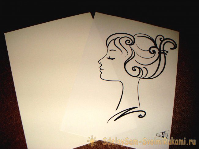 В качестве основы можно использовать лист обычного белого картона. Еще потребуется изображение девушки в профиль. Вы можете найти его в Интернете и распечатать на листе бумаги.