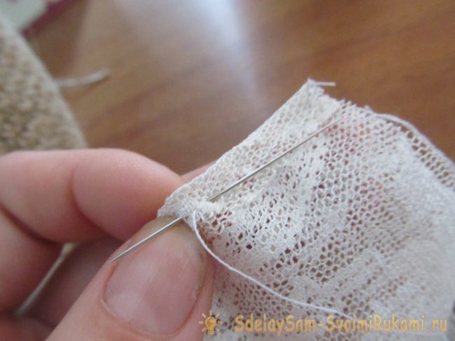 9. Пришиваем ткань к джутовой основе невидимыми швами.