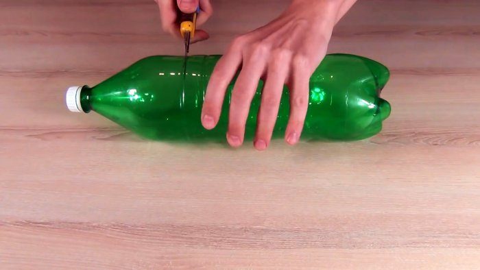 Для изготовления ловушки нужно взять пластиковую бутылку объемом 1,5-2 л. Из нее необходимо срезать горловину. Рез выполняется как можно ровнее по линии перехода горловины в прямые стенки. Подготовленные половинки пока откладываются.