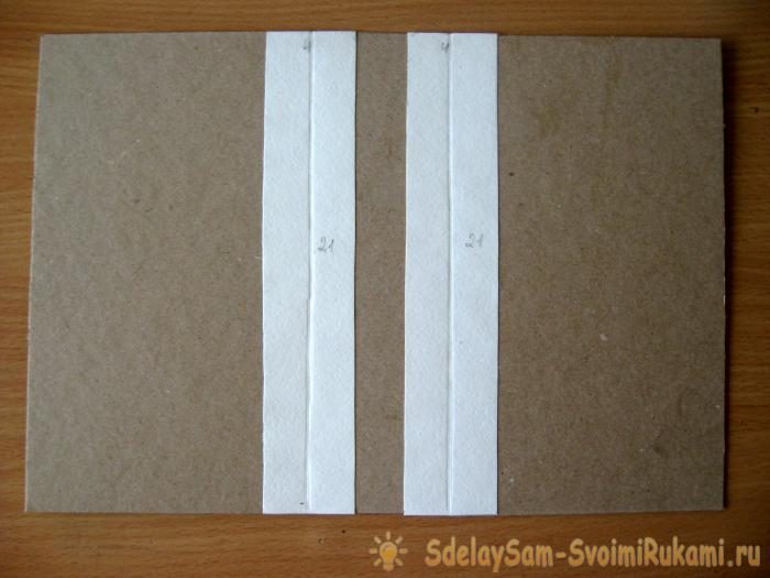 Так как у нас есть три переплетные заготовки, нам нужно соединить их в единую цельную основу, поэтому мы отрезаем две полоски из акварельной бумаги 4*21 см.