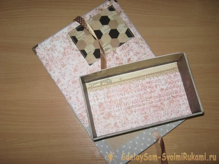 Собираем и склеиваем днище нашей шкатулки и вклеиваем его теперь в верхнюю основную часть нашей обложки. Также ставим нашу шкатулку под пресс. Вставляем уголки, клеим машинку и наша купюрница готова. Благодарю за внимание, Всем успехов и пока!!!