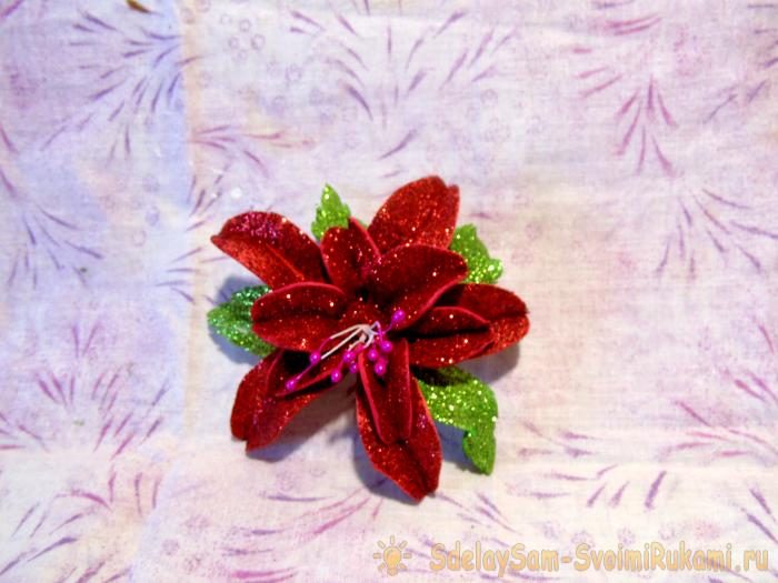 Остаётся хорошо закрепить саму лилию, учитывая свободное место для бутона. А если лепестки и листья сильно свисают с крыши, их следует немного поднять ближе к цветку и приклеить. Чтобы при открывании крышки они не мешали пальцам.