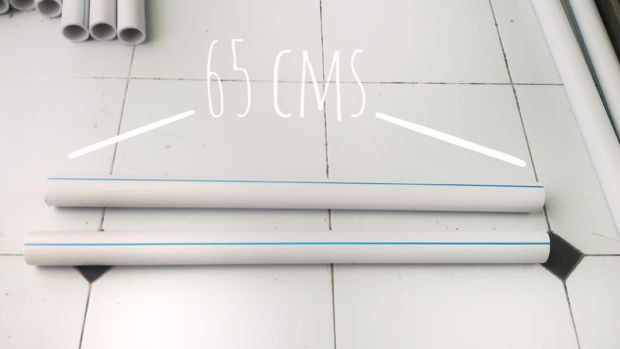 Теперь при помощи ножовки или циркулярной пилы делаем отрезки трубы длиною 65 см. И дополнительно 4 отрезка по 15 см для подголовника. Края труб нужно зачистить наждачной бумагой. Длину основных труб можно сделать больше или меньше по вашему усмотрению. Из-за ограниченного пространства для гамака я использовал 35 труб. Но вы можете сделать его длиннее, добавив дополнительные элементы.