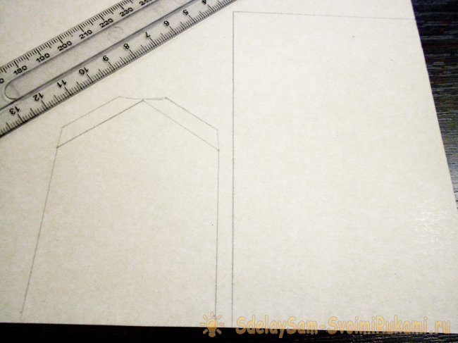 Заготовки для домика чертим на картоне простым карандашом. После линии нужно будет стирать.