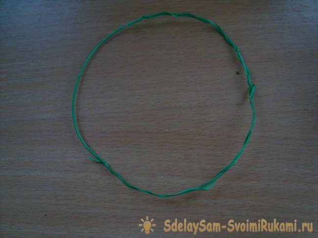 Шаг 7. Из проволоки сделаем круг диаметром 10 см. Обмотаем его бусами и приклеим на основание подсвечника.