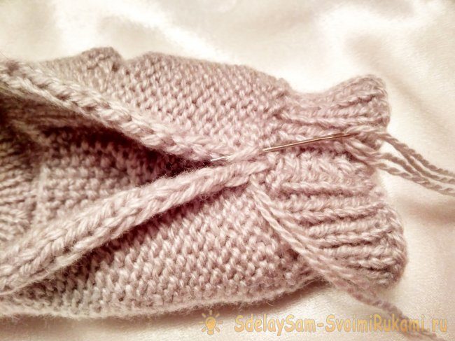 Сшить края митенок трикотажным швом.