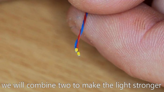 Через него заводится переплетенные провода 2-х светодиодов.