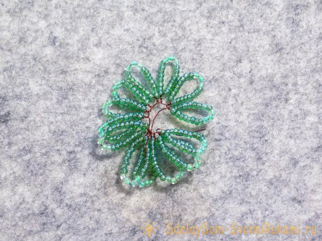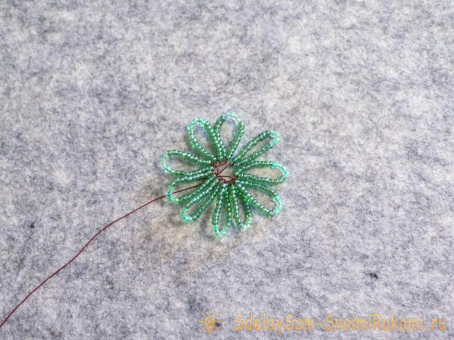 На длинный конец проволоки набираем ту же последовательность бисера. Делаем вторую петлю.