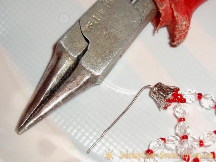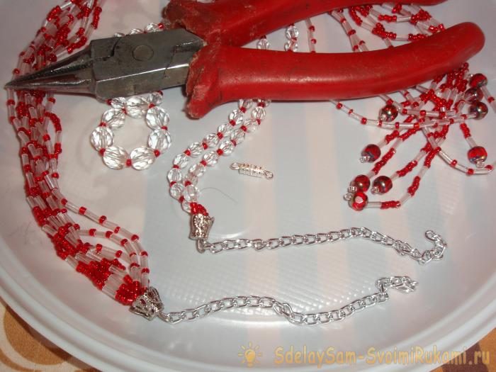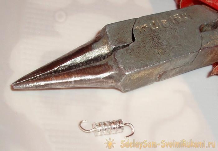 20. Берём обе части ожерелья, замочек и тонкогубцы.