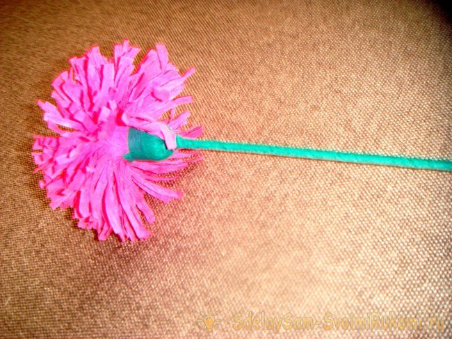 И приклейте ее поверх желтой серединки. Не забывайте периодически добавлять клей ПВА, чтобы лепестки надежно держались.