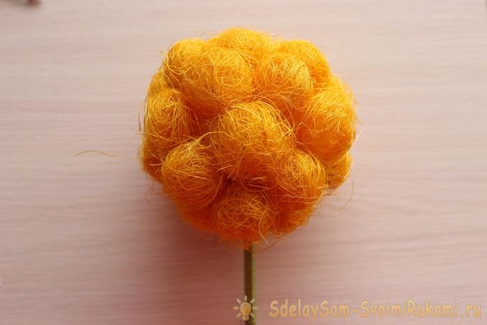 Из сизаля скатайте шарики размером с грецкий орех.