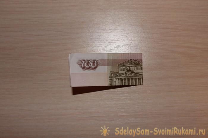 Возьмите купюры, сложите их пополам вдоль, а затем поперек.