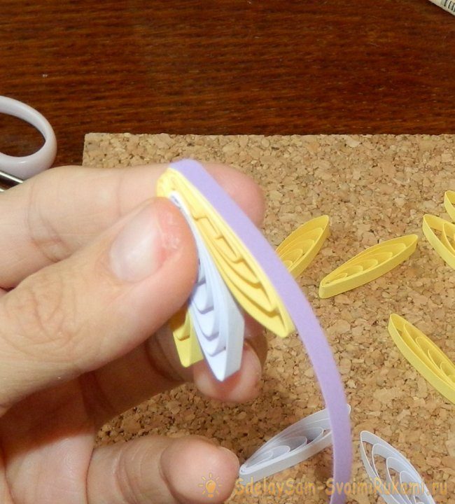 Бумага для квиллинга – желтая, нежно-фиолетовая, белая;