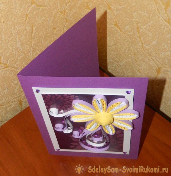 Очень оригинальная и необычная открытка своими руками в технике квиллинг готова!