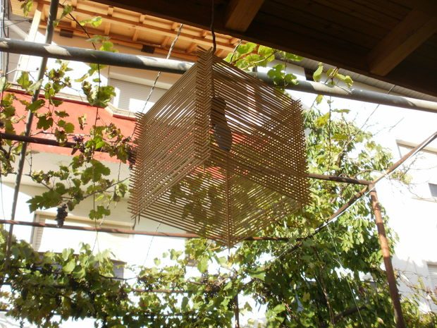 Конечно все можно оставить и так. А лучше, для лучшей сохранности покрыть светильник прозрачным лаком по дереву, тогда его хватит не на один сезон и деревянные палочки не потеряют свой цвет и не почернеют.
