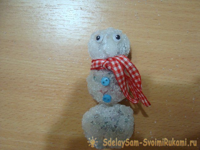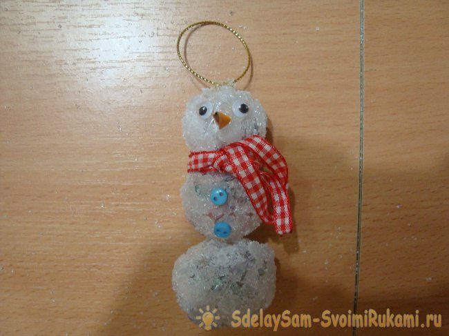 Такая замечательная игрушка непременно украсит новогоднюю ёлочку, а сахар создаст эффект того, что снеговик слеплен из снега. А если вы привлечете к этой работе детей, то они будут просто в восторге!