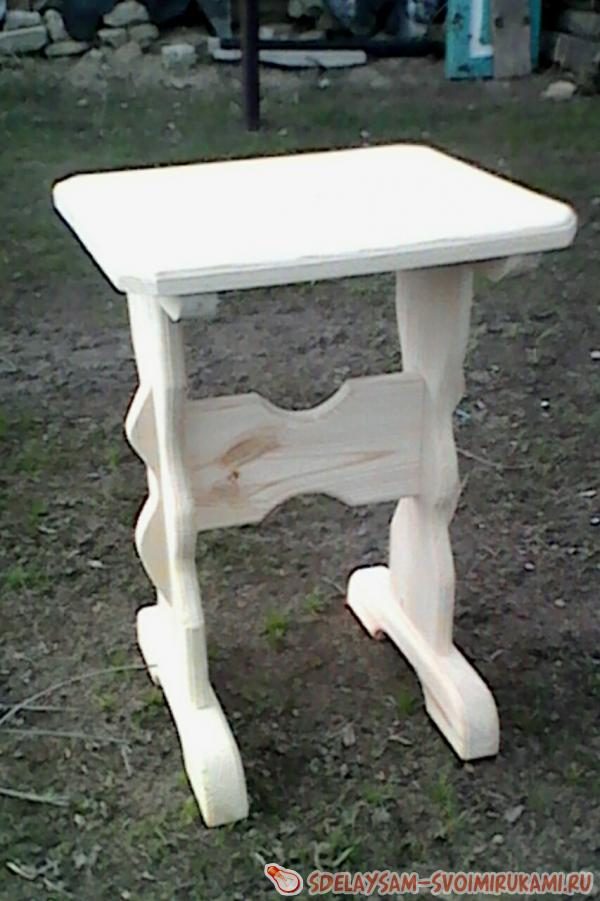 Пример создания деревянного табурета на саморезах. Размер: сидение 35 на 35 сантиметров; высота 45 сантиметров. Для изготовления табурета использовалась сосна. Если древесина приобретена готовая к работе, никаких дополнительных действий по обработке антисептическими растворами проводить не нужно.