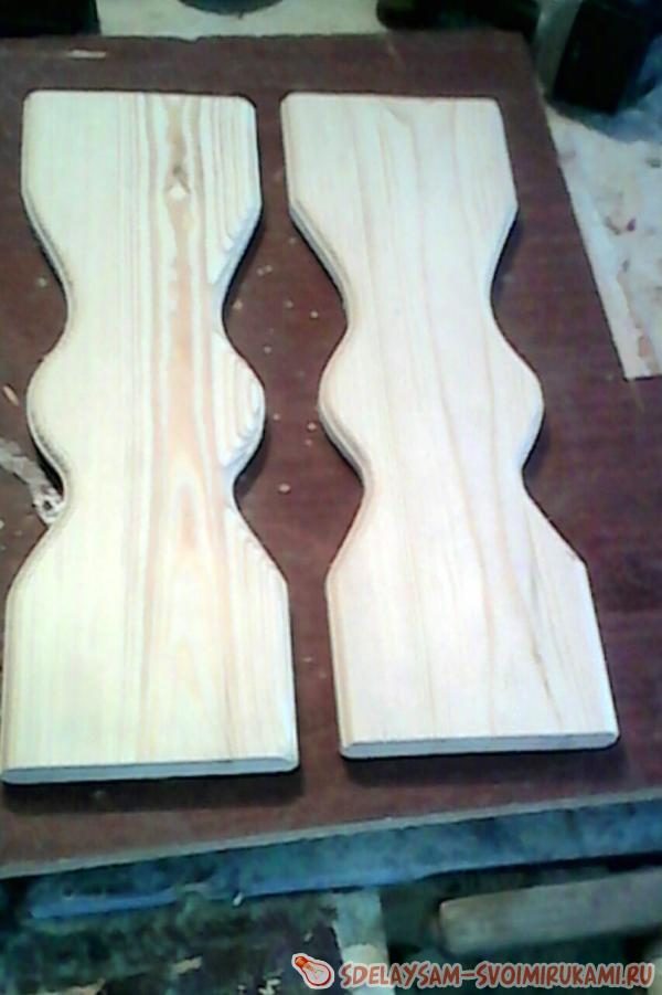 Когда все инструменты готовы, простой карандаш заточен, и мысленное представление табурета перенесено на бумажный носитель, можно приступать к строительству. В первую очередь, изготавливаются – ножки, проножки и царги. Проножки и царги – это основа всей конструкции. Они берут на себя всю ответственность за надежную эксплуатацию. Когда все заготовки вырезаны можно приступать к их обработке. Верхний, грубый слой древесины снимается при помощи болгарки. Затем, когда очевидные дефекты сглажены, шлифуются наждачной бумагой. Крепление подножки с ножками произвел при помощи саморезов – 4,2*76. Нижнее соединение и крепление сидения произведено саморезами – 3,8*51.