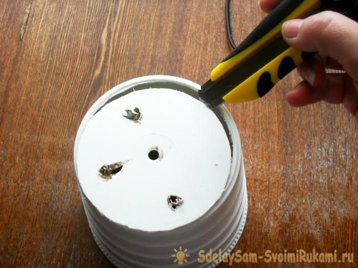 Вырезаем дно у горшка и салатника.