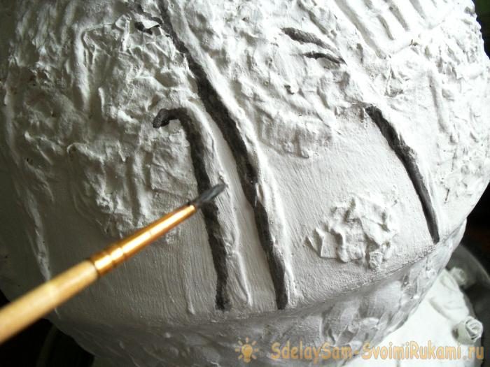 Обводим черным впадины вокруг яичных скорлупок.
