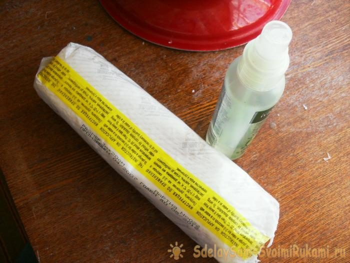 Гипсовый бинт постепенно раскручиваем, тщательно сбрызгивая водой.