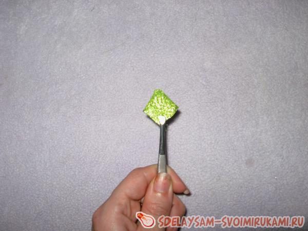 Зажимаем в зажим и пока откладываем. Теперь также складываем и парчевый квадрат.