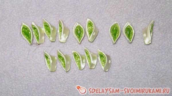 Все срезики также обжигаем и разравниваем лепесток.