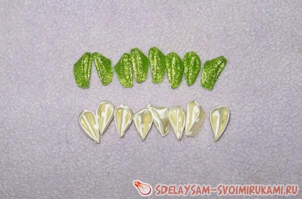 Итак, делаем двойных лепестком 14 штук, и одинарных по 8 штук из каждой ленты.