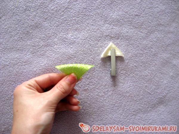 Складываем пополам по диагонали раз, затем вовнутрь правую сторону лепестка.
