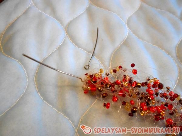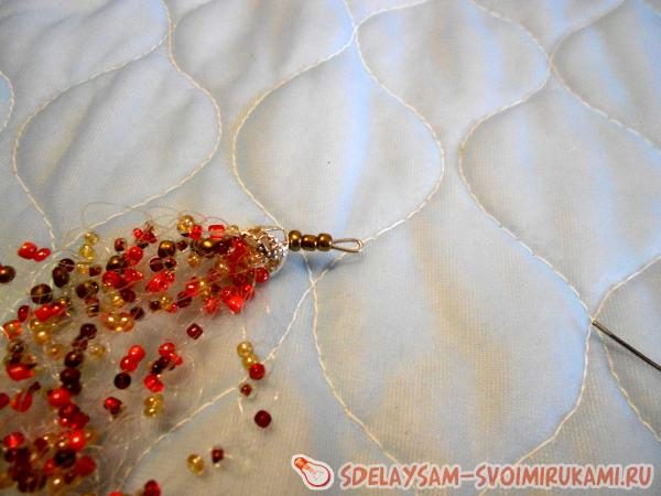 Для начала необходимо подготовить бисерную нить, которая послужит нам основой. Для этого набираем бисер различных оттенков в хаотичном порядке. Набирать определенный рисунок здесь не имеет смысла. Вся прелесть украшения именно в смешении оттенков.