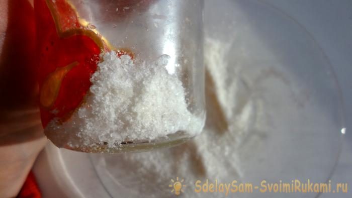 13. После полного высыхания клея, снимите излишки соли, проводя по поверхности подсвечника пальцем.