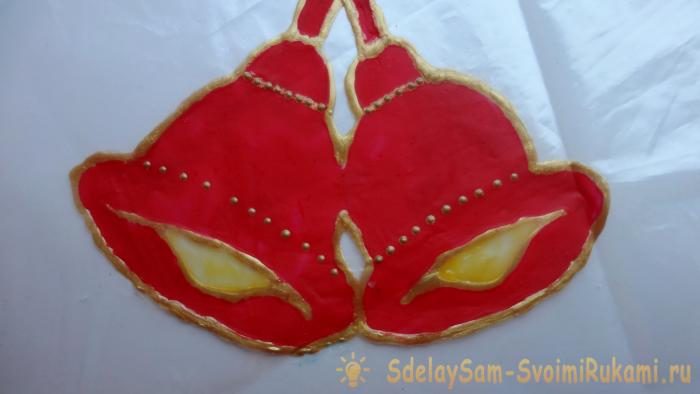 3. Контуром по стеклу обводим границы колокольчика. При отсутствии специального контура – смешать клей ПВА и гелевую пасту золотого цвета до образования однородной массы.