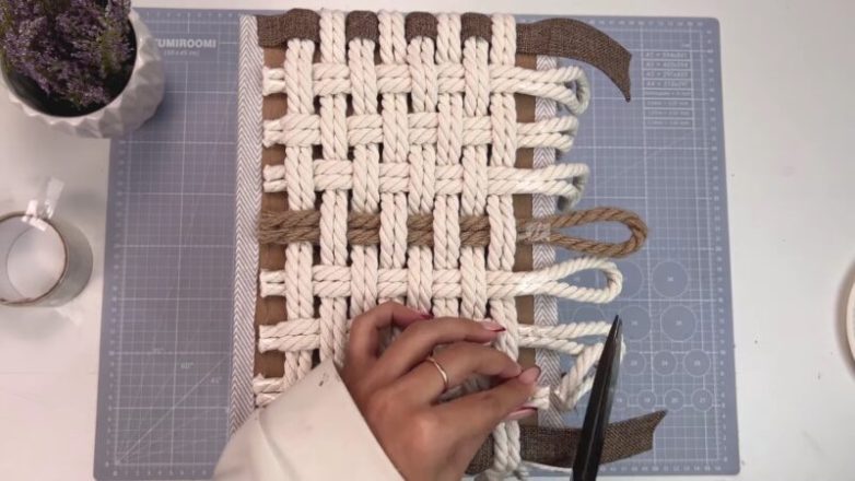 После завершения плетения излишки шнура срежьте.