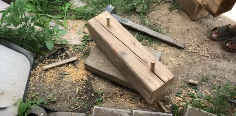 Затем необходимо определиться с желаемой высотой дивана и подлокотников — ее будем набирать, просто составляя вместе несколько одинаковых заготовок из бруса. Между собой заготовки можно соединить, например, при помощи шкантов и подходящего для дерева клея.