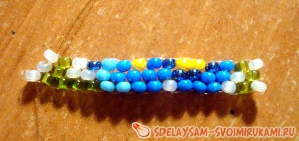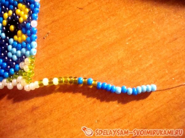 12. Выходим из крайней бисерины первого ряда и приступаем к следующей бисерины.