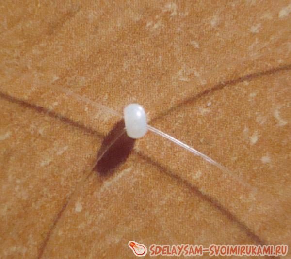 1. Нанизываем первую молочную бусину так, как показано на фото.