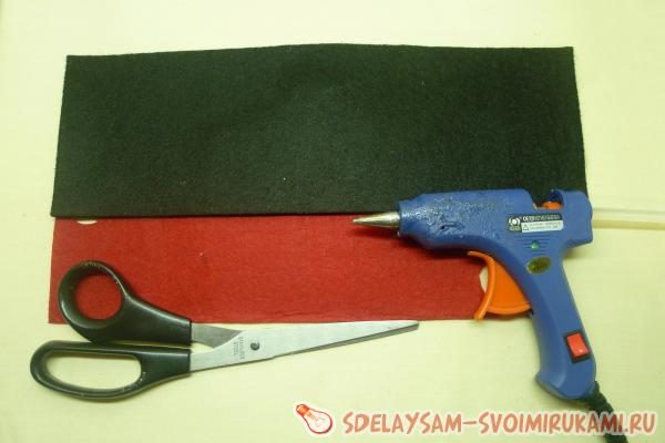 Из черного фетра заготавливают две полосы: