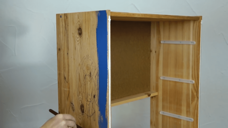 Шпаклевать в этот раз ничего не пришлось, так как на старом комоде отсутствуют глубокие трещины и сколы. Корпус и крышку комода было решено покрасить в цвет индиго. Для работы мастерица предлагает взять не малярную кисть, а художественную. Благодаря этой хитрости высохшая поверхность будет выглядеть более гладкой, а в местах, где присутствуют элементы тонирования, будет более четко просматриваться фактура дерева.
