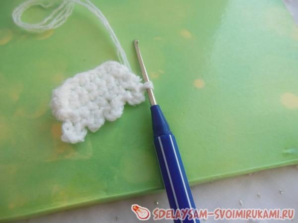 Край изделия (он же 5-й ряд) провязываем арками из 3 в. п, закрывая каждую цепочку в той же петле, из которой её и начинали.