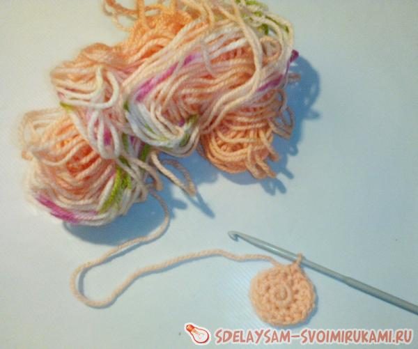— 20 гр, акриловая пряжа фантазийного окрашивания в персиковых тонах для вязания цветов;