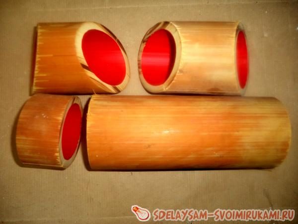 При оформлении своего интерьера иногда возникает проблема подобрать аксессуары. Вариантом решения которой, может стать изготовление своими руками. Нарезаем бамбук. Для нарезки заготовок отлично подойдет дисковая пила, но в принципе можно обойтись и электролобзиком.