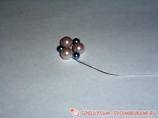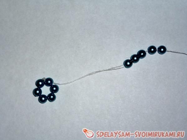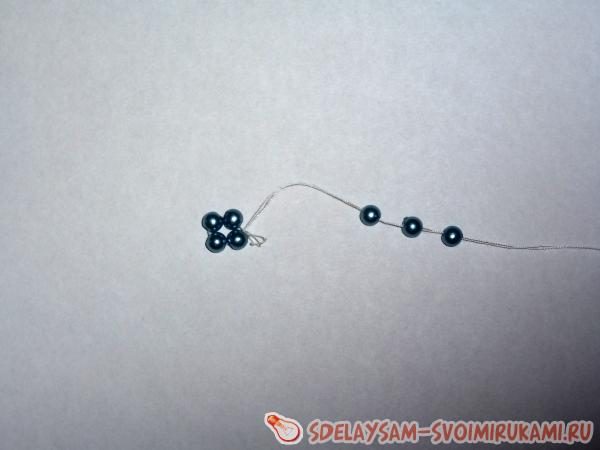 Затем набираем еще 5, и делаем петлю, замыкая их с одной из бусин первой петли. Повторяем процедуру еще раз.